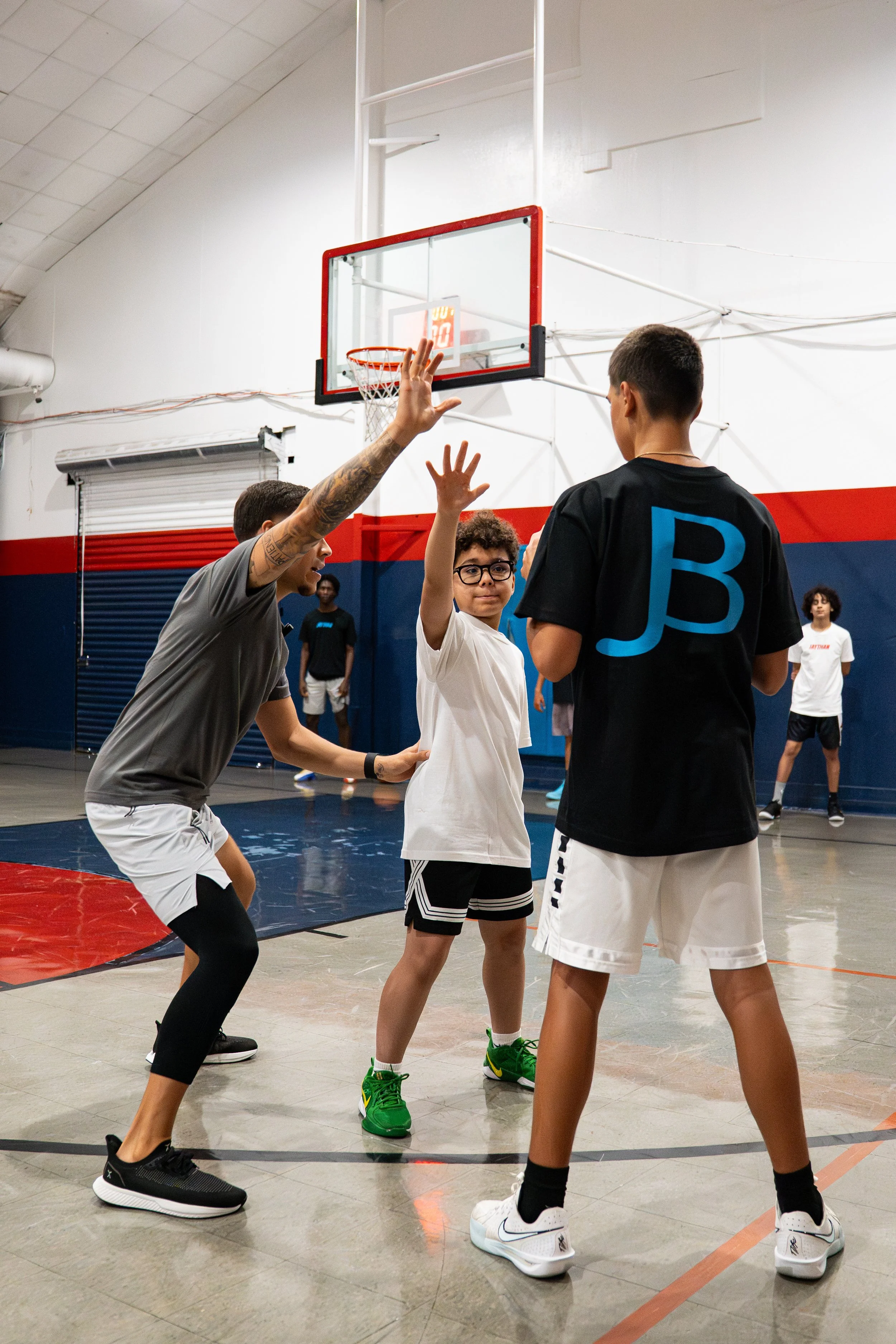 Moving Ball handling: Half court and back 3x for first three drills. Pocket dribble, between the legs, behind the back Then pocket dribble freestyle with live defender. Goal is to get down and back 3x without defender stealing it.